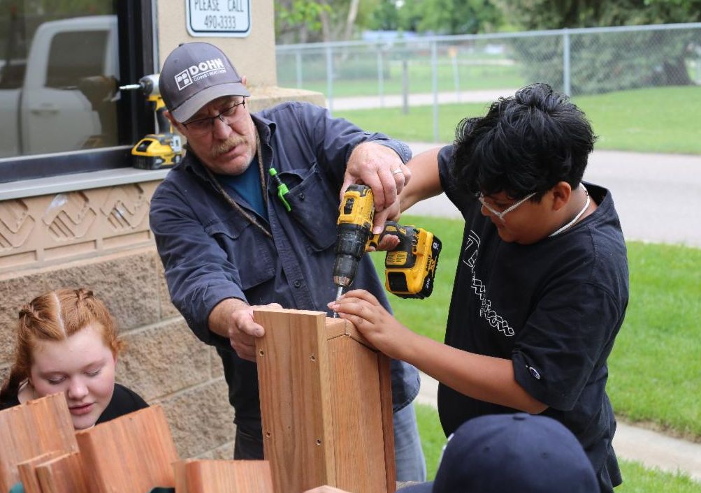 All decked out in safety gear, the youth were given a tour of the site and a peek at apartment buildings in different stages of completion. Seeing the project in progress heightened curiosity and spurred great questions from participants as they explored! Later in the “Construction” themed week, volunteers from Dohn Construction helped guide participants in designing and building their own bird houses!