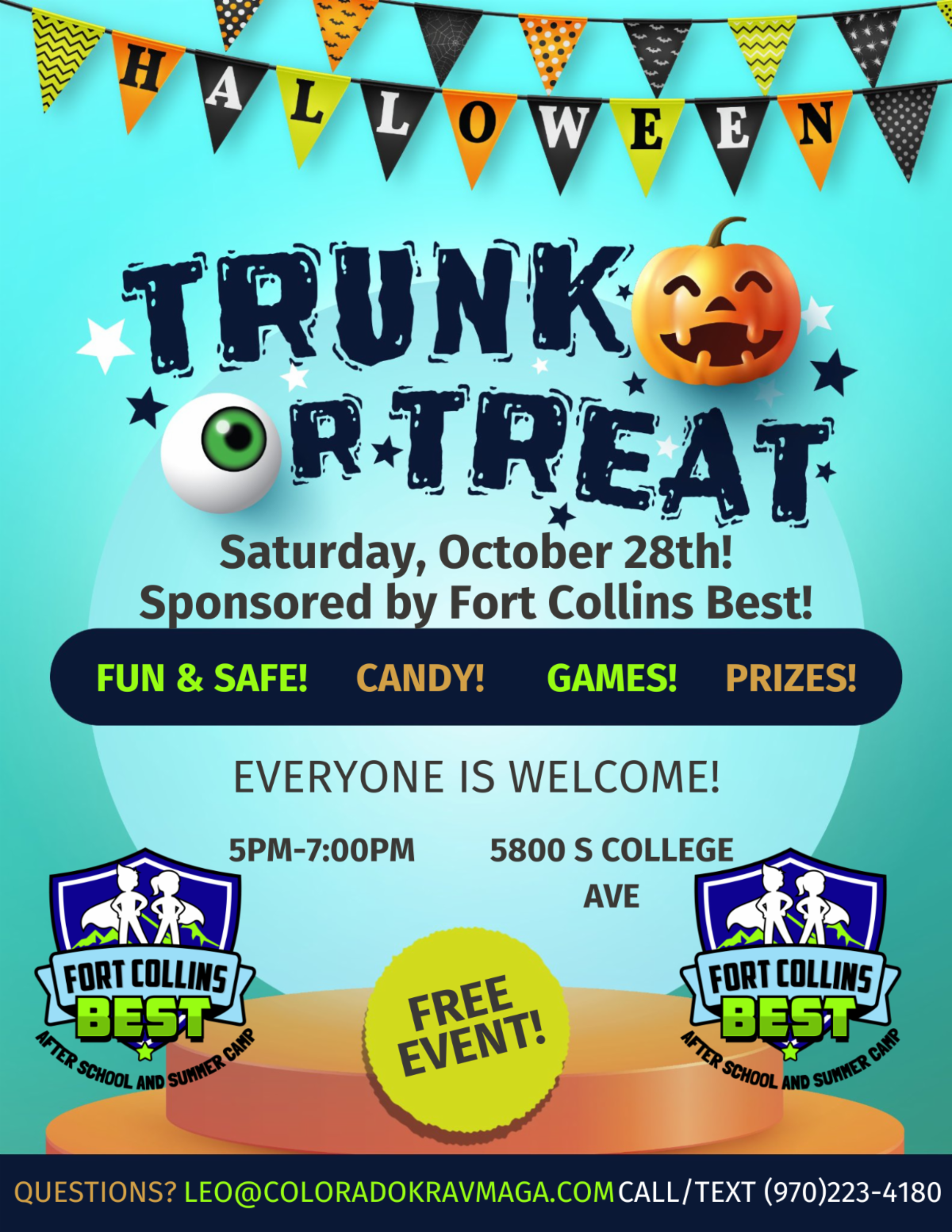 Join our PSC neighbor, Fort Collins Krav Maga, for trunk or treating! There will be candy, games and prizes.